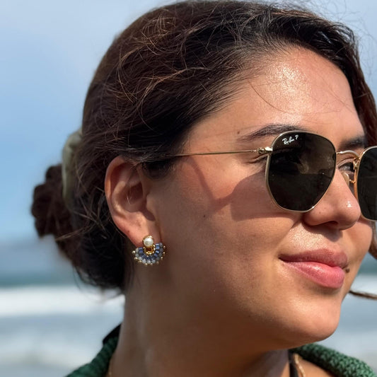 Arete Perla Rosa y Azul