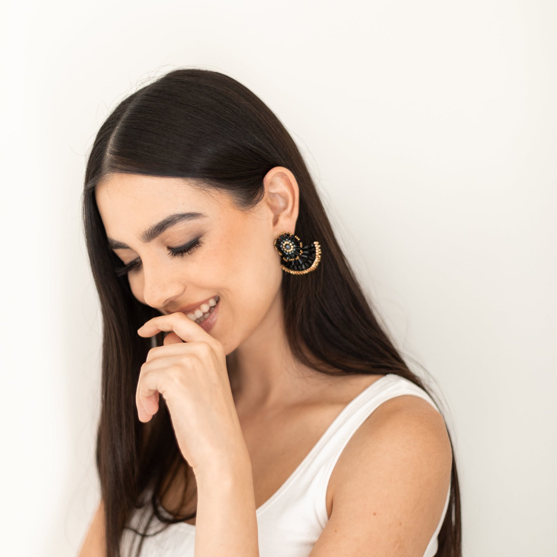 Destaca tu estilo con nuestros llamativos aretes en negro.