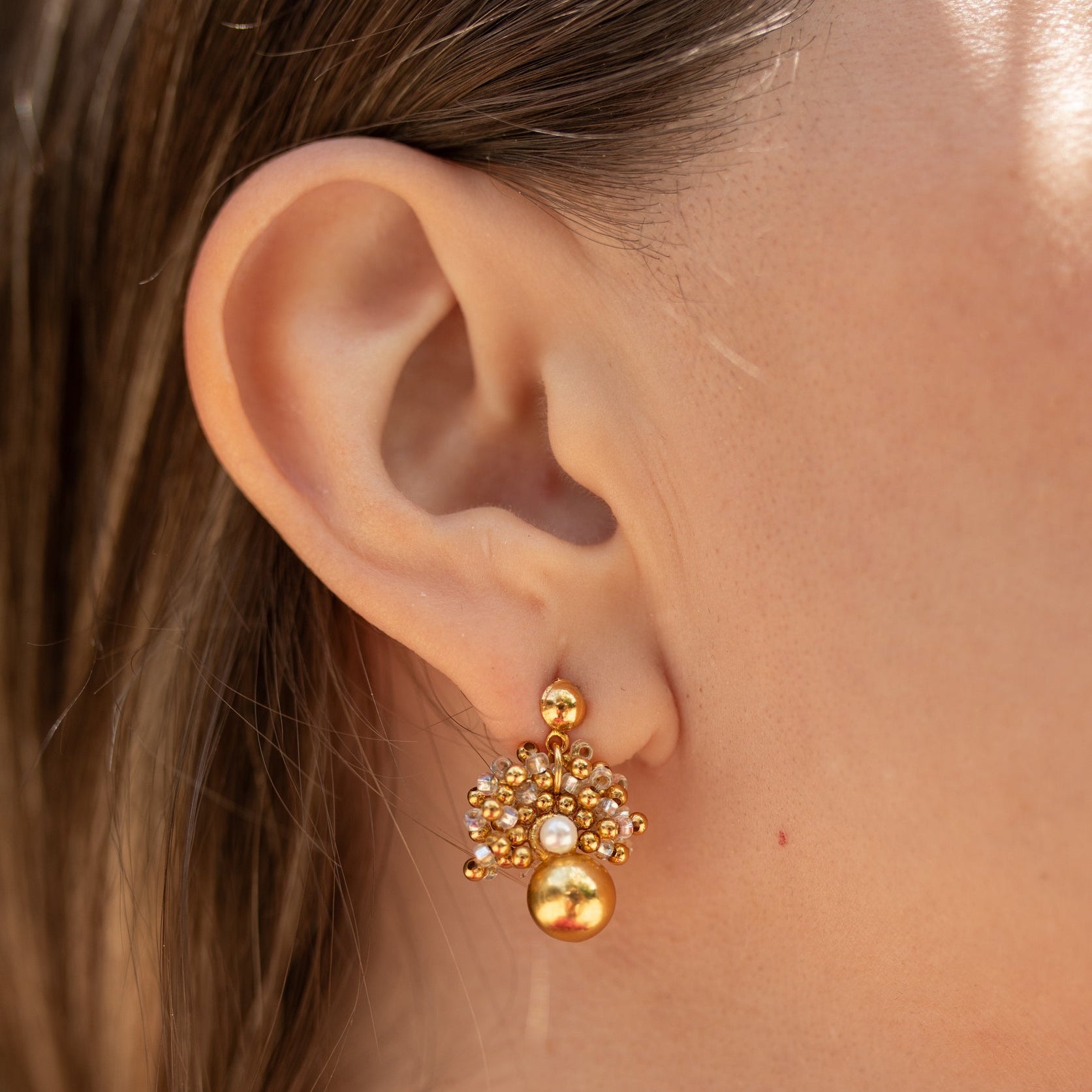 Nuestros aretes abanico en blanco resaltan por su exclusividad en una variedad de formas, brindando un toque distintivo y único a tu estilo.