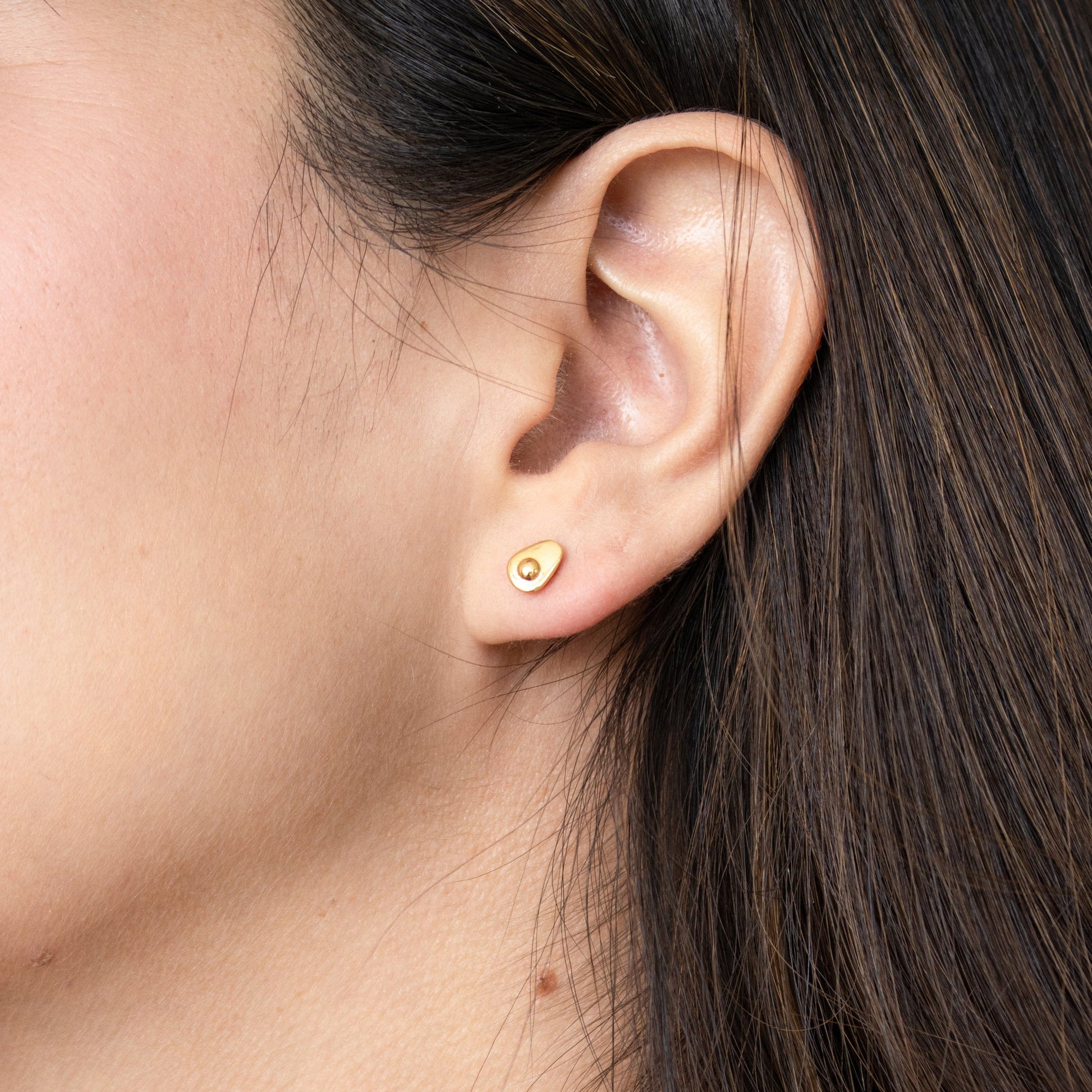 Aretes de aguacate en chapa de oro 22k, una pieza única y moderna que combina frescura y elegancia. Perfectos para destacar tu estilo con un toque de originalidad y sofisticación. ¡Hazlos tuyos y deslumbra