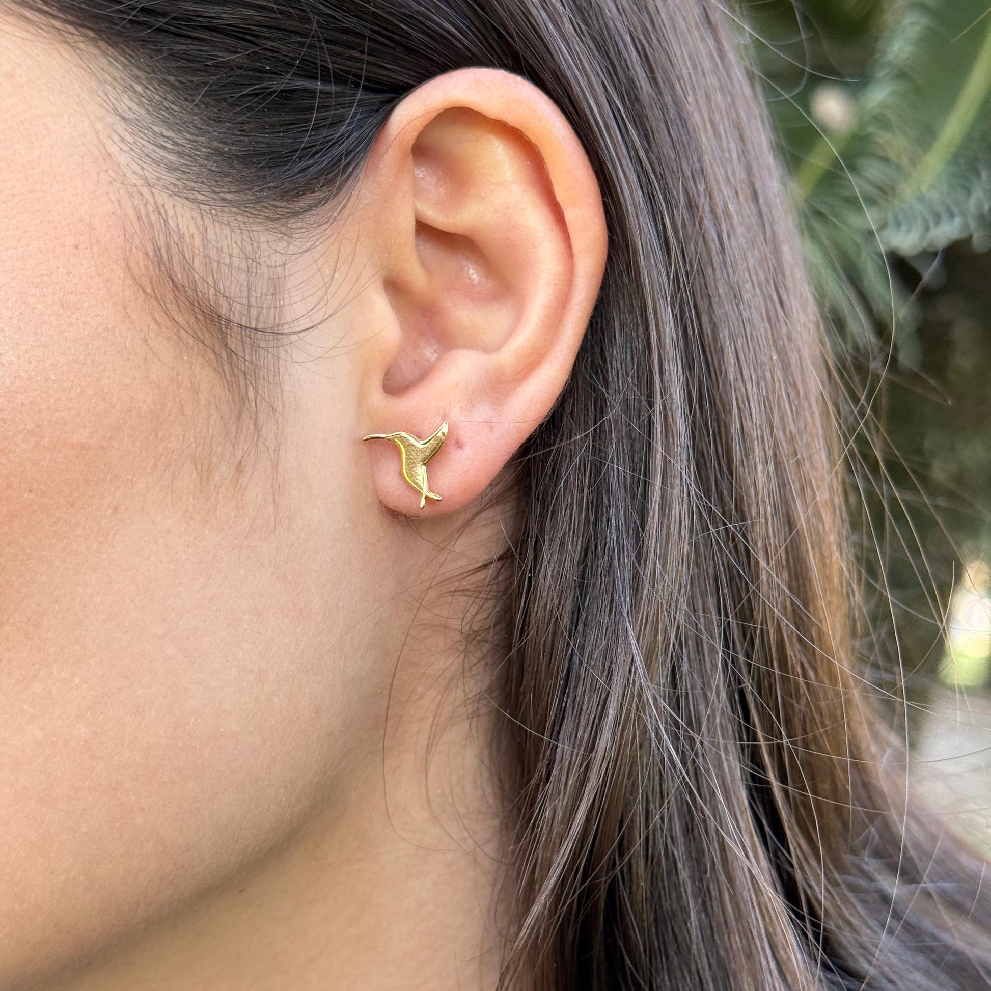 Ligero como el viento, elegante como el colibrí. Nuestro arete colibrí en chapa de oro 22k es el detalle perfecto para un estilo lleno de gracia y frescura.