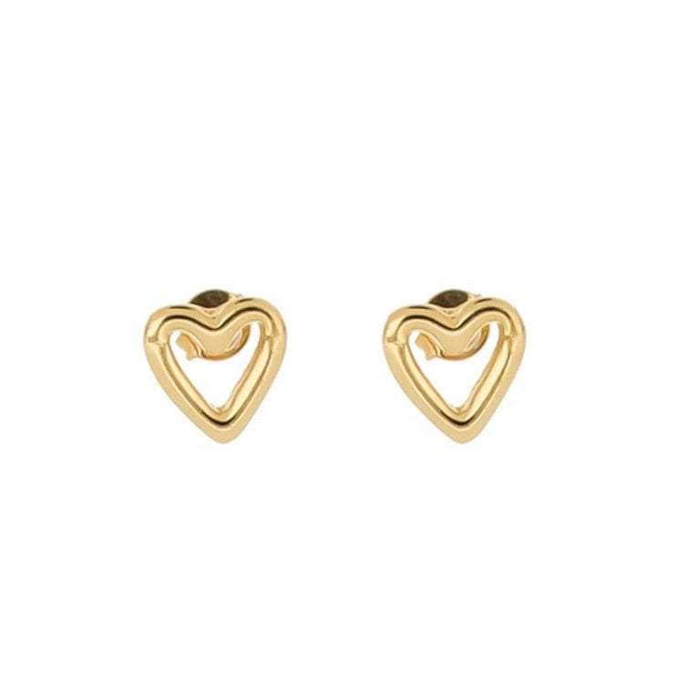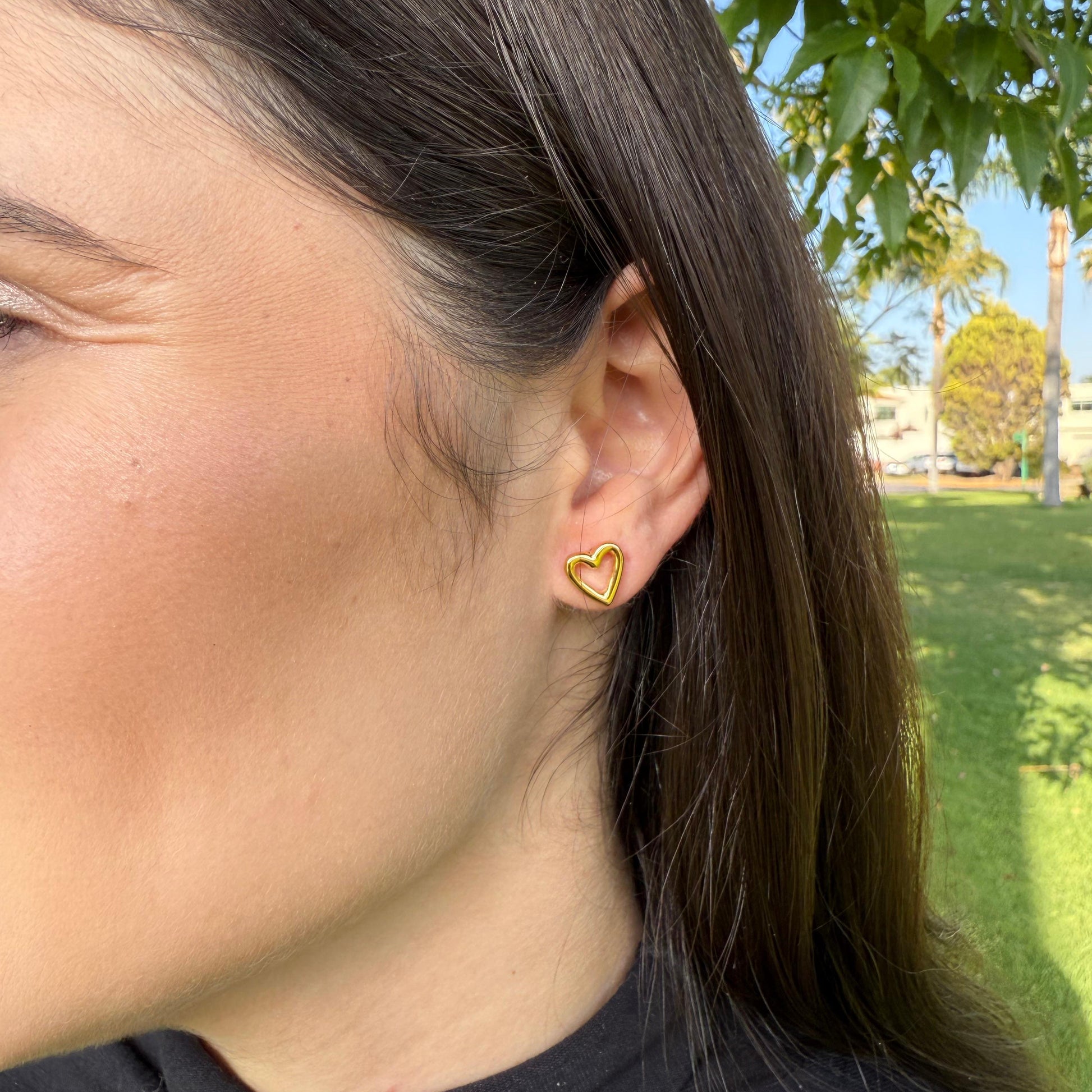 Dulzura en su máxima expresión. Nuestro arete de corazón Silueta en chapa de oro de 22k es el detalle perfecto para añadir un toque tierno y elegante a tu look diario.