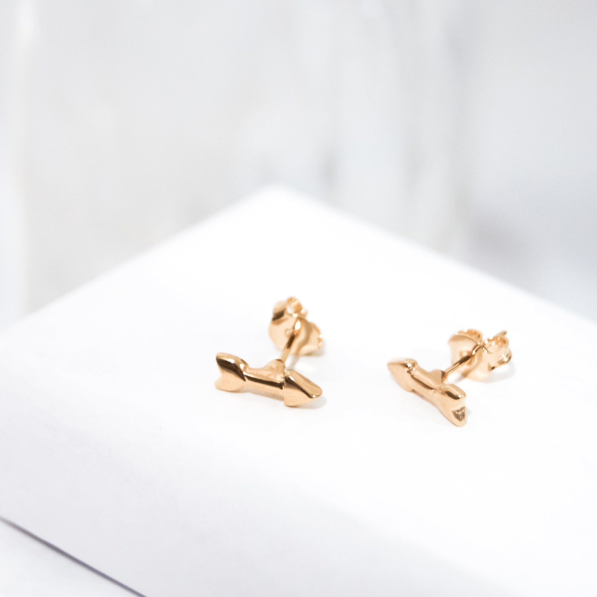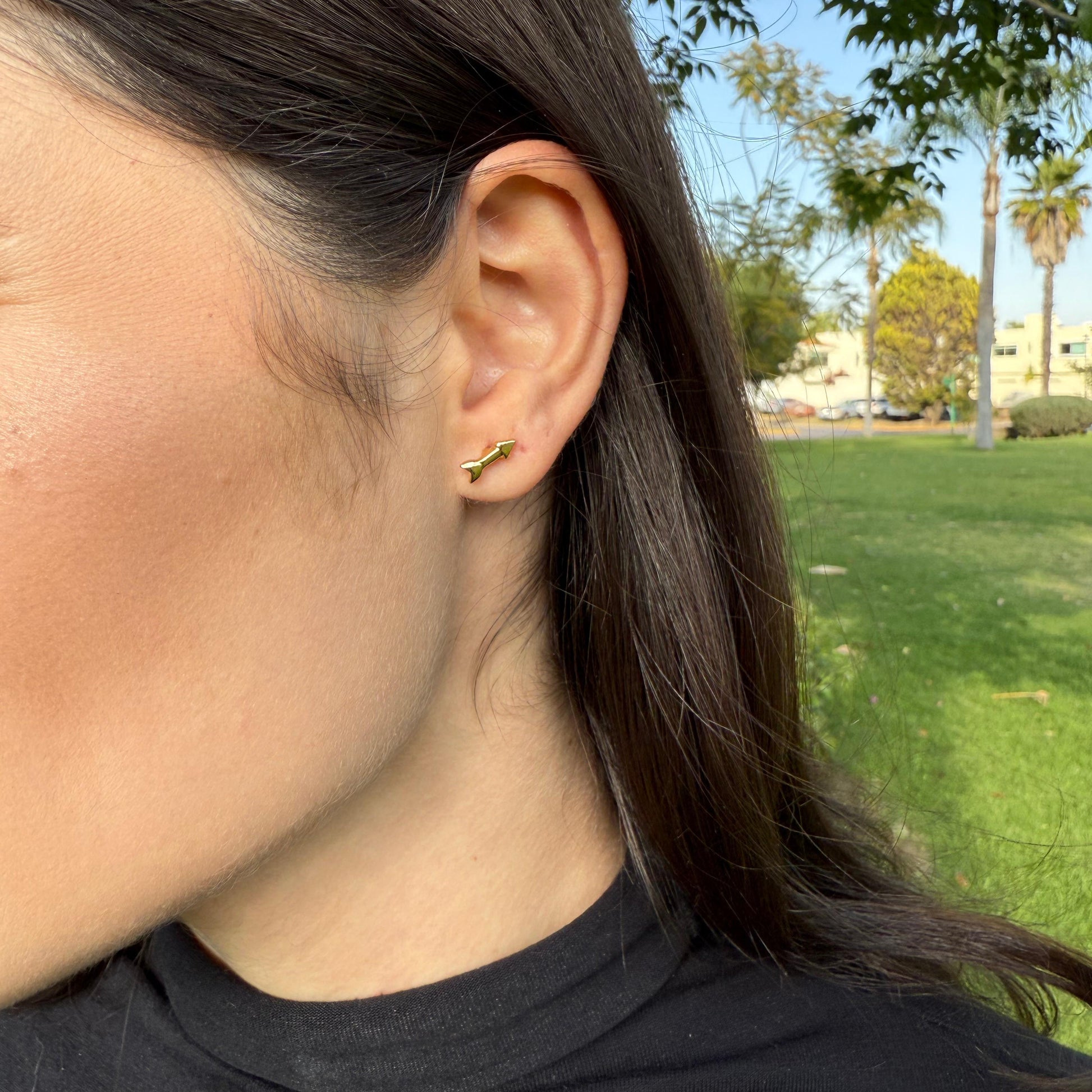 Apunta hacia la elegancia. Nuestro arete flecha mini en chapa de oro de 22k es el detalle perfecto para añadir un toque moderno y dinámico a tu estilo diario.