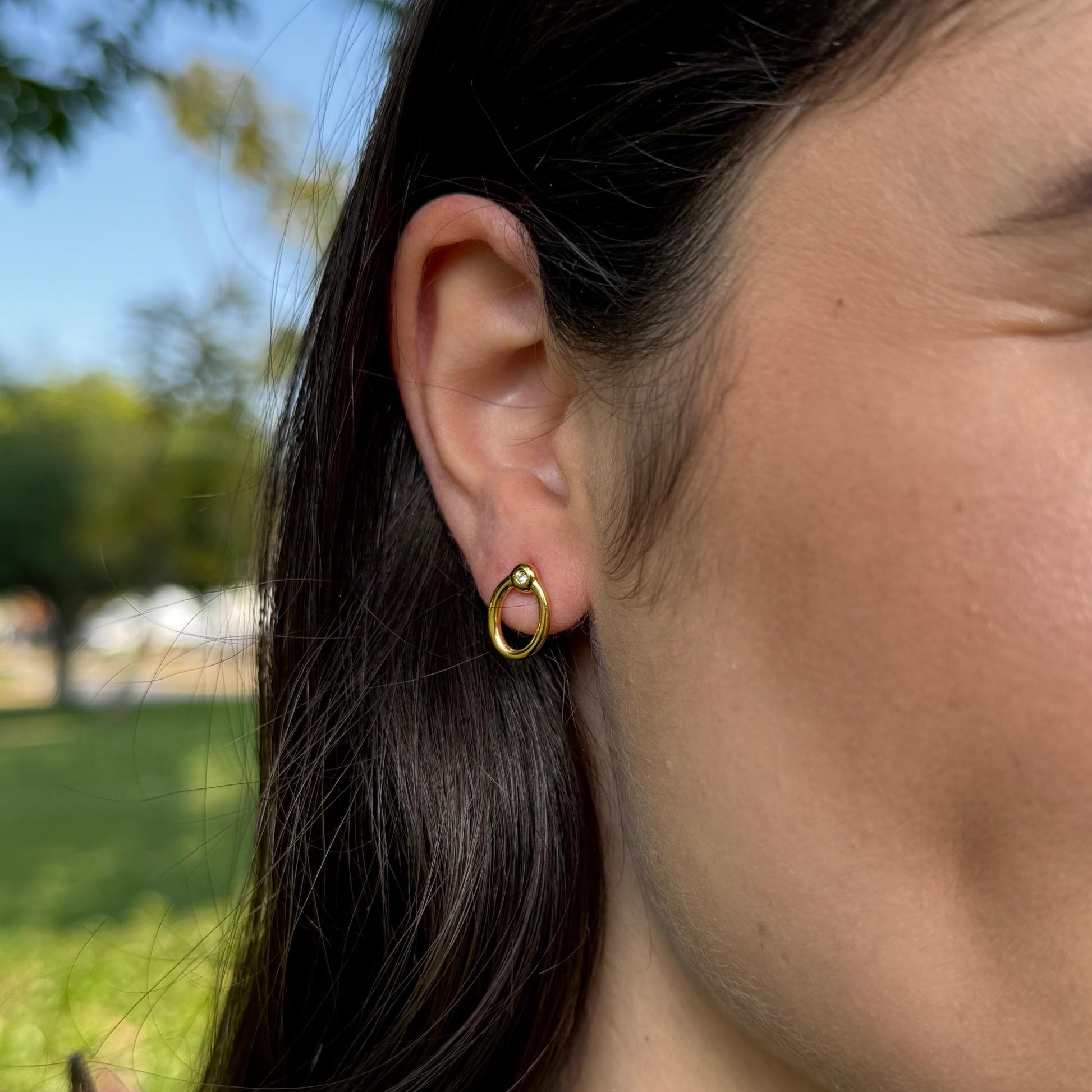 Elegancia discreta: aretes ovalados con cristal, el detalle sutil que realza tu sofisticación.