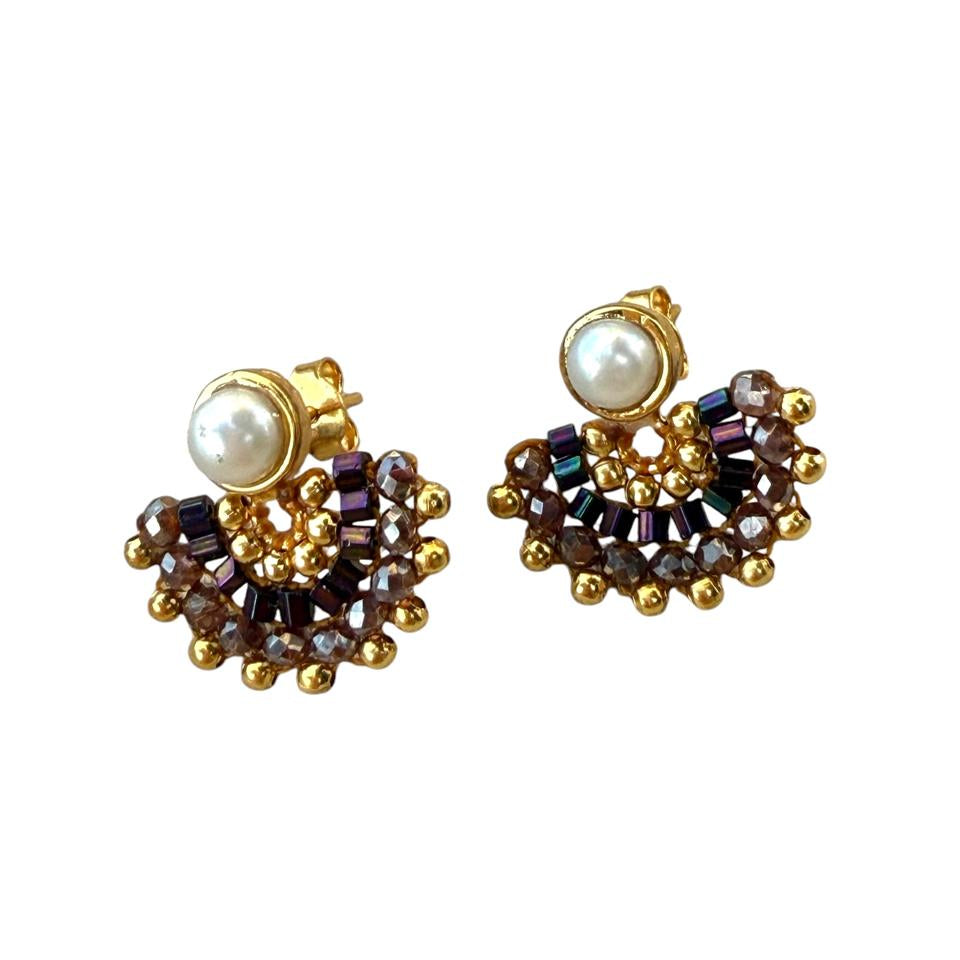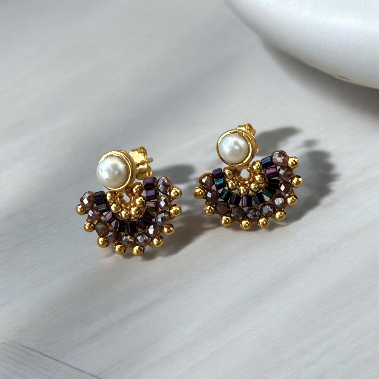 Estos aretes artesanales en un suave tono morado, acompañados de una elegante perla natural, son una joya única que aporta un toque de frescura y sofisticación a tu estilo. Hechos a mano con materiales de calidad, su diseño delicado y femenino los convierte en el complemento perfecto para cualquier ocasión especial.