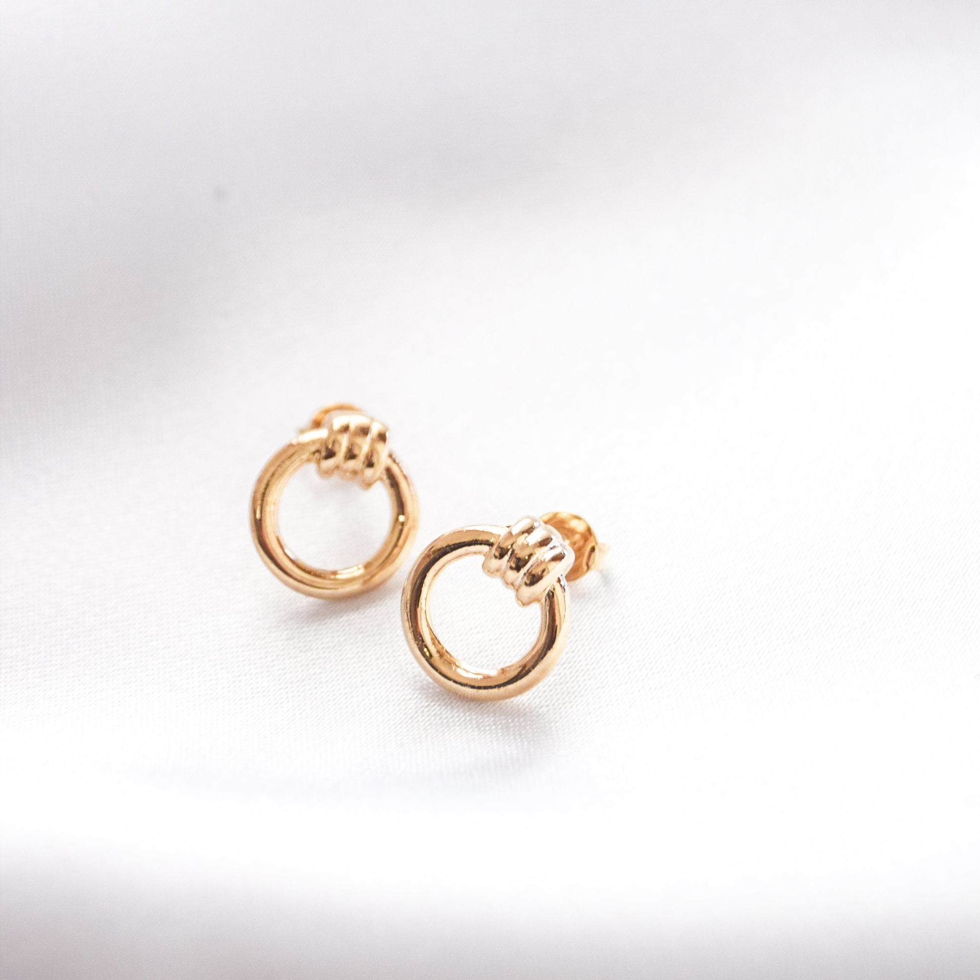 Sencillez y sofisticación en cada giro. Nuestro arete de tres aros en chapa de oro 22k aporta un toque elegante y moderno, ideal para cualquier ocasión.