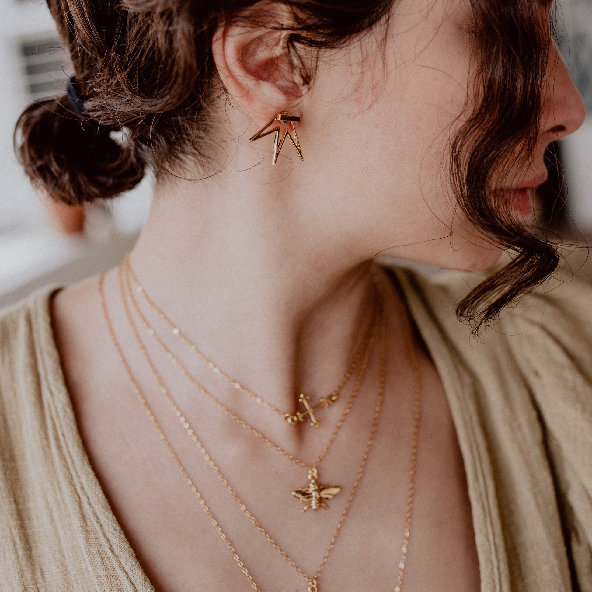 Broquel Tres Picos en chapa de oro 22k – diseño único, tres formas de llevarlo, mil formas de hacer que sea muy tú.