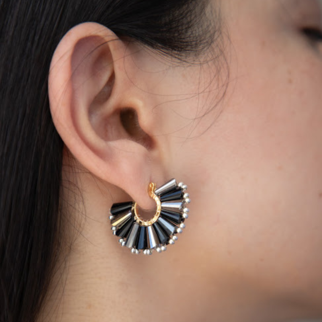 Inspiradas en la riqueza de México, las Arracadas Liora combinan los tonos verde, azul y negro para reflejar la fuerza, el cielo y la tierra.