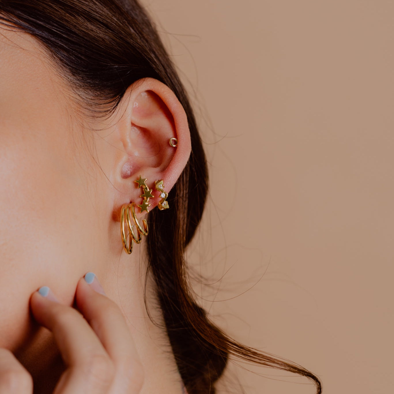Eleva tu estilo con nuestros elegantes aretes triples, diseñados para adaptarse a cualquier ocasión. Su diseño versátil y sofisticado los convierte en el complemento perfecto, ya sea para un día casual o una noche especial. Con un toque de distinción, estos aretes añaden un brillo sutil que realza tu belleza natural. Perfectos para cualquier momento, siempre estarás a la altura con Bonhomia Joyas.