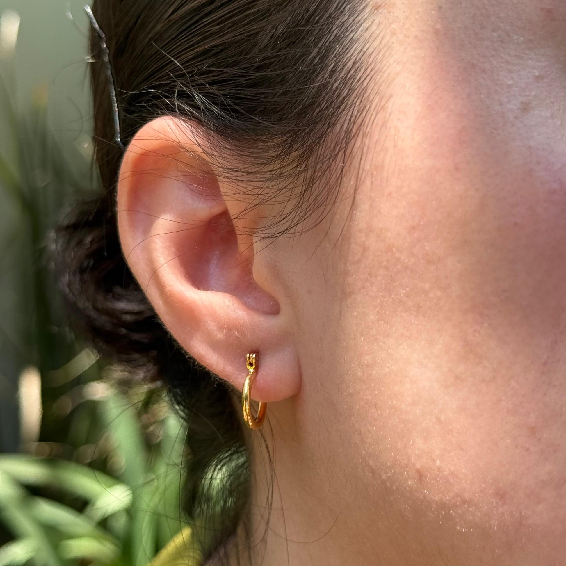Las Classic Hoop Earrings son la esencia de la elegancia atemporal. Con un diseño liso y clásico, estas arracadas en chapa de oro 22K ofrecen una pieza delicada pero impactante que nunca pasa de moda. Su forma perfecta y sencilla es ideal para complementar cualquier estilo, desde el más casual hasta el más sofisticado.