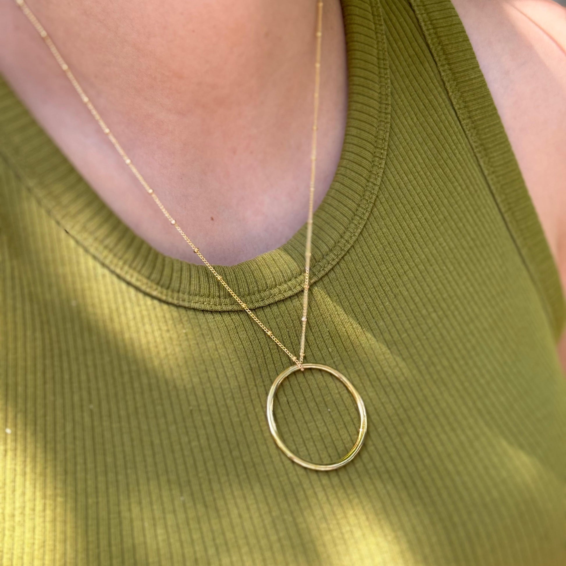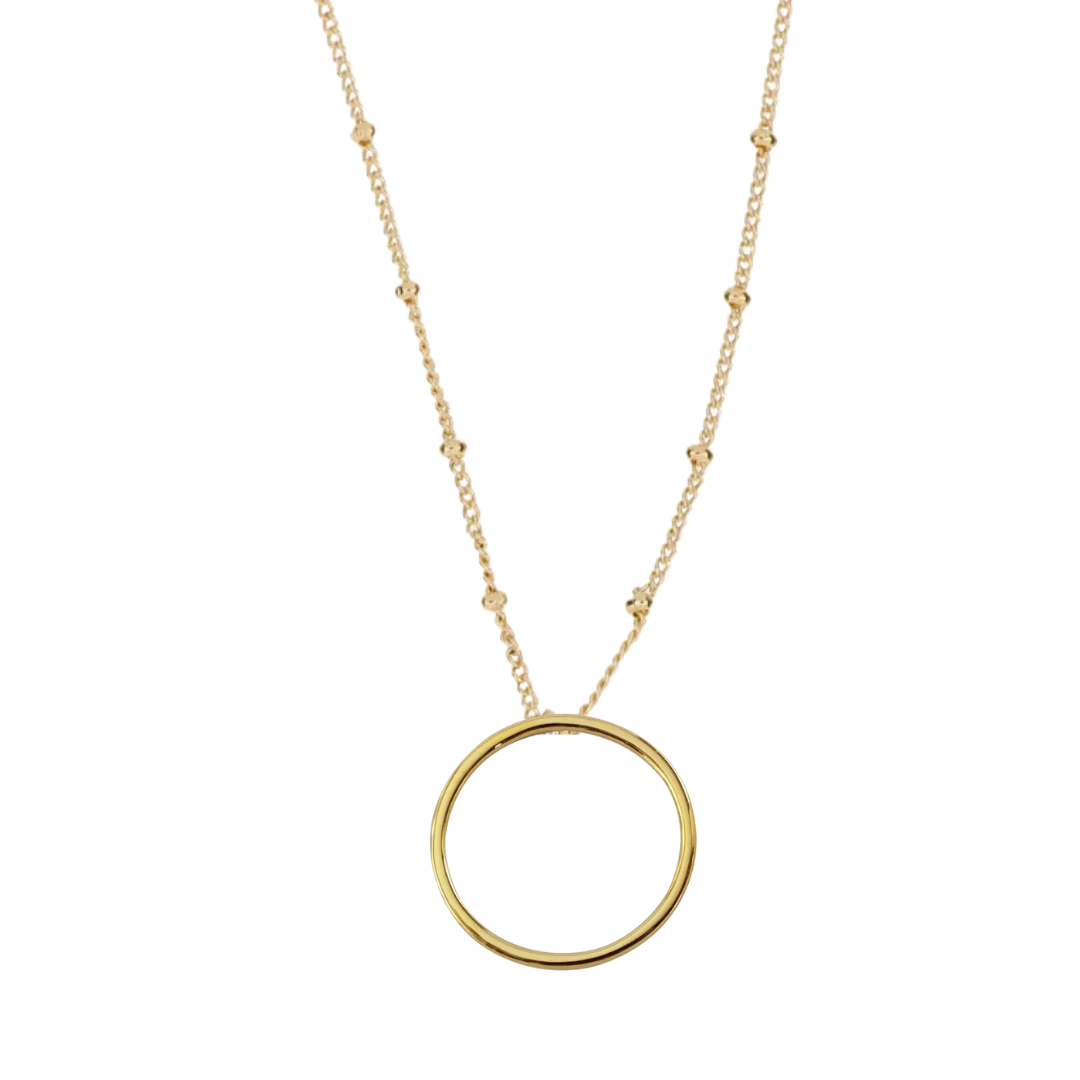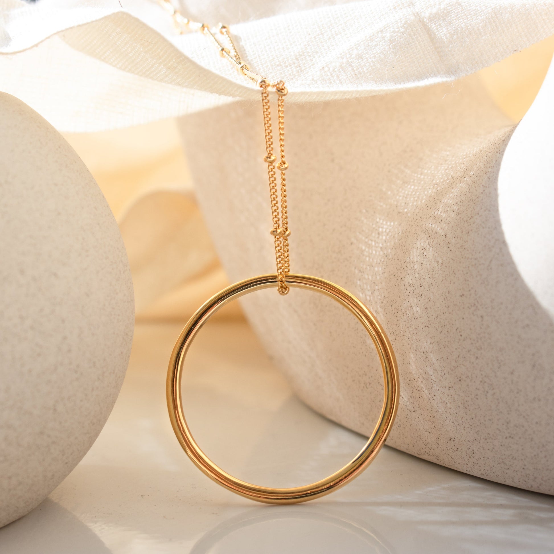 Minimalismo con carácter. Este collar con aro y cadena boleada mini, elaborado en chapa de oro de 22 quilates, es ideal para usar todos los días. Su diseño sutil y versátil lo convierte en el complemento perfecto para cualquier look, ya sea solo o en layering.