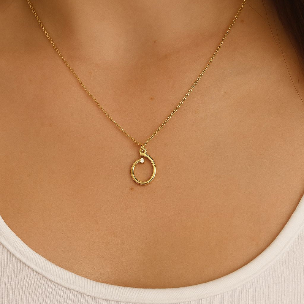 Un nombre con luz propia. El collar "Aura", con un delicado cristal y acabado en chapa de oro de 22 quilates, es una joya sutil y significativa que resalta tu esencia.