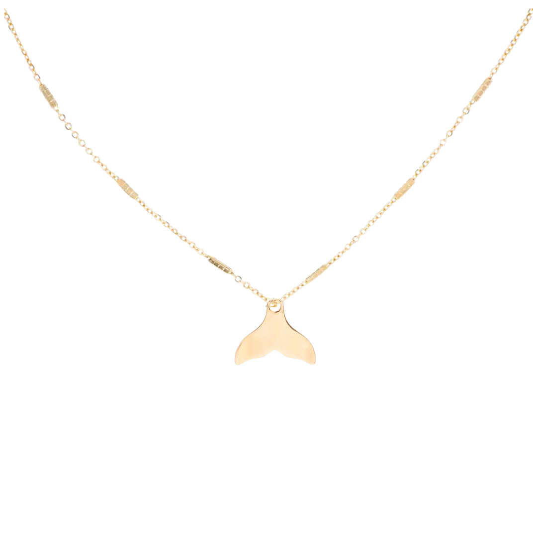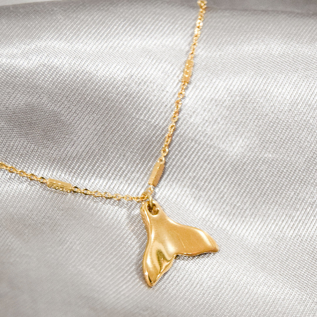 Conéctate con la naturaleza y la fuerza. Nuestro collar de cola de ballena en chapa de oro de 22k es un diseño único que simboliza libertad, elegancia y un espíritu indomable.