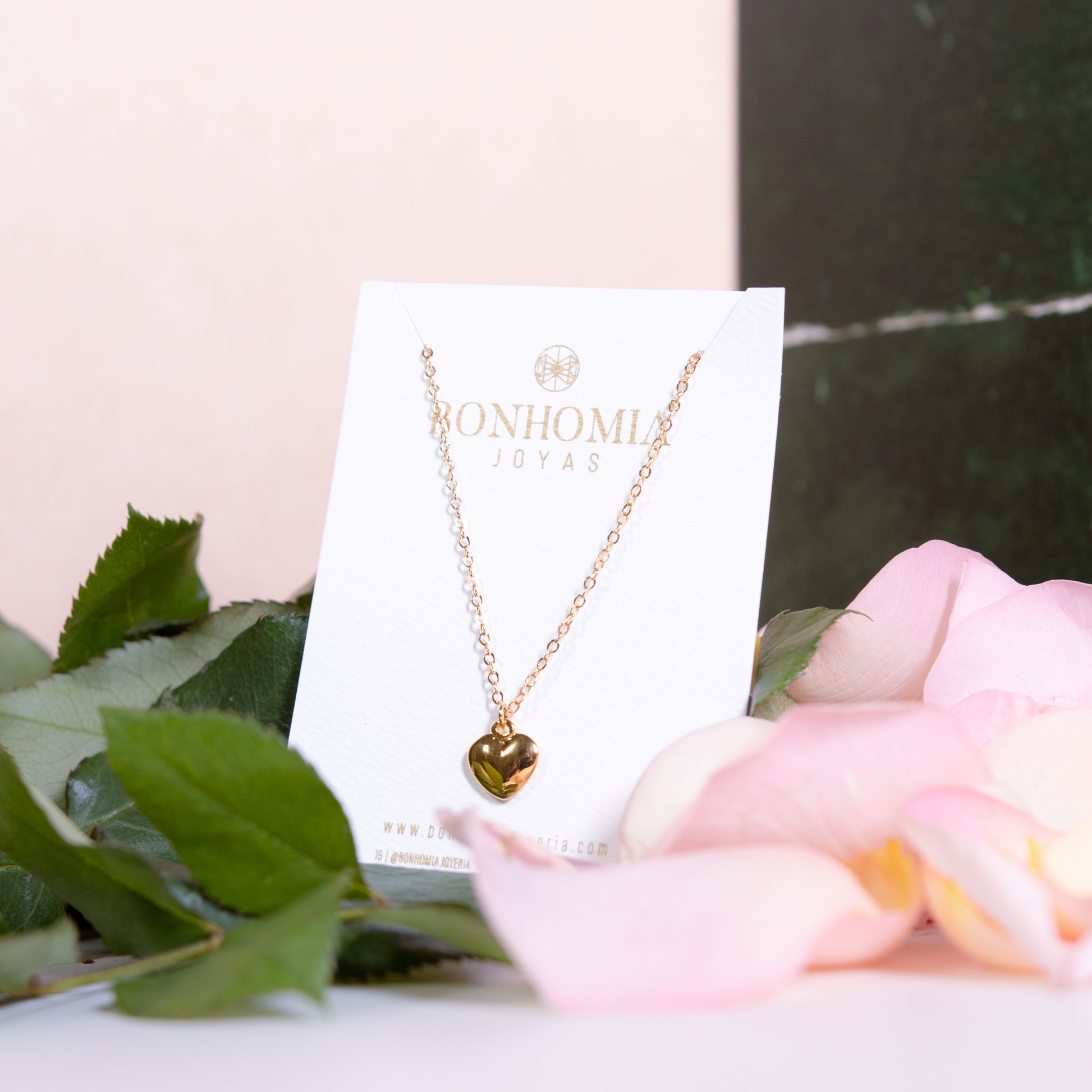 Elegancia y amor en su máxima expresión. Este collar de corazón en chapa de oro de 22k es el detalle perfecto para llevar siempre cerca a esa persona especial.