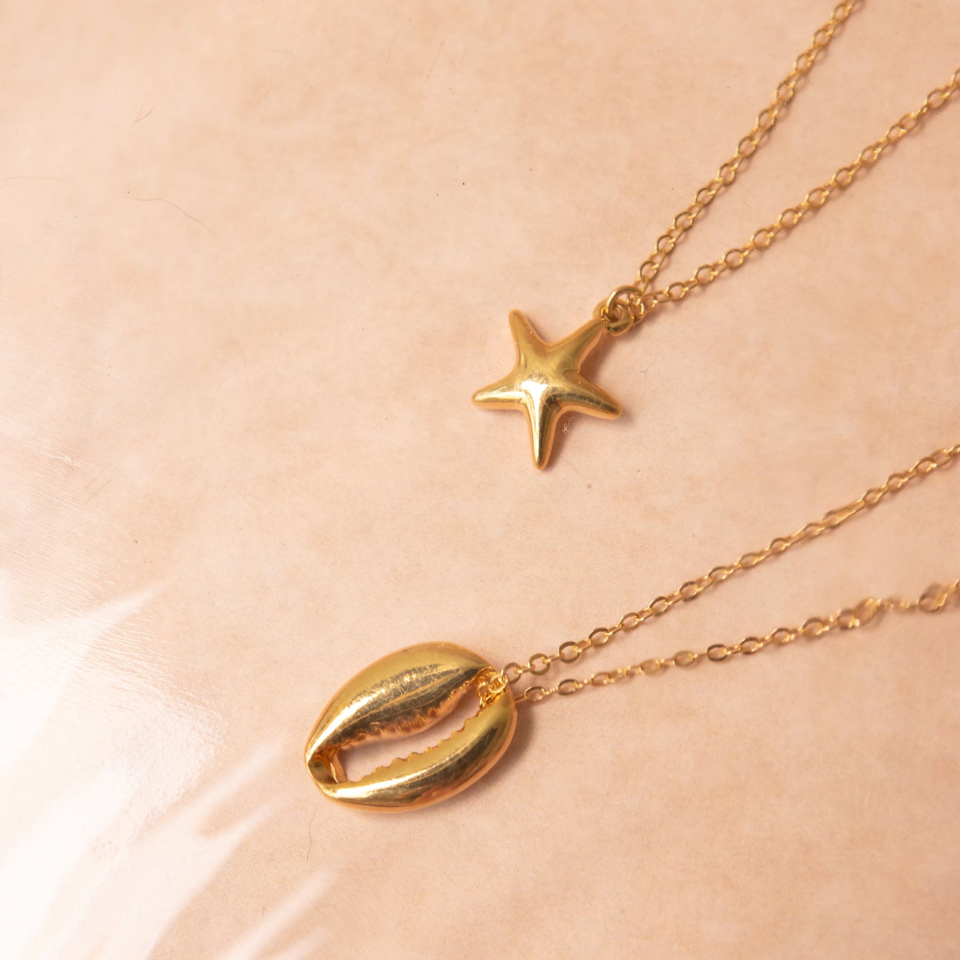 Brilla con el estilo único de nuestro collar de estrella de mar en chapa de oro 22K. Elegante, delicado y perfecto para cualquier ocasión. ¡Hazlo tuyo y lleva la belleza del mar contigo!