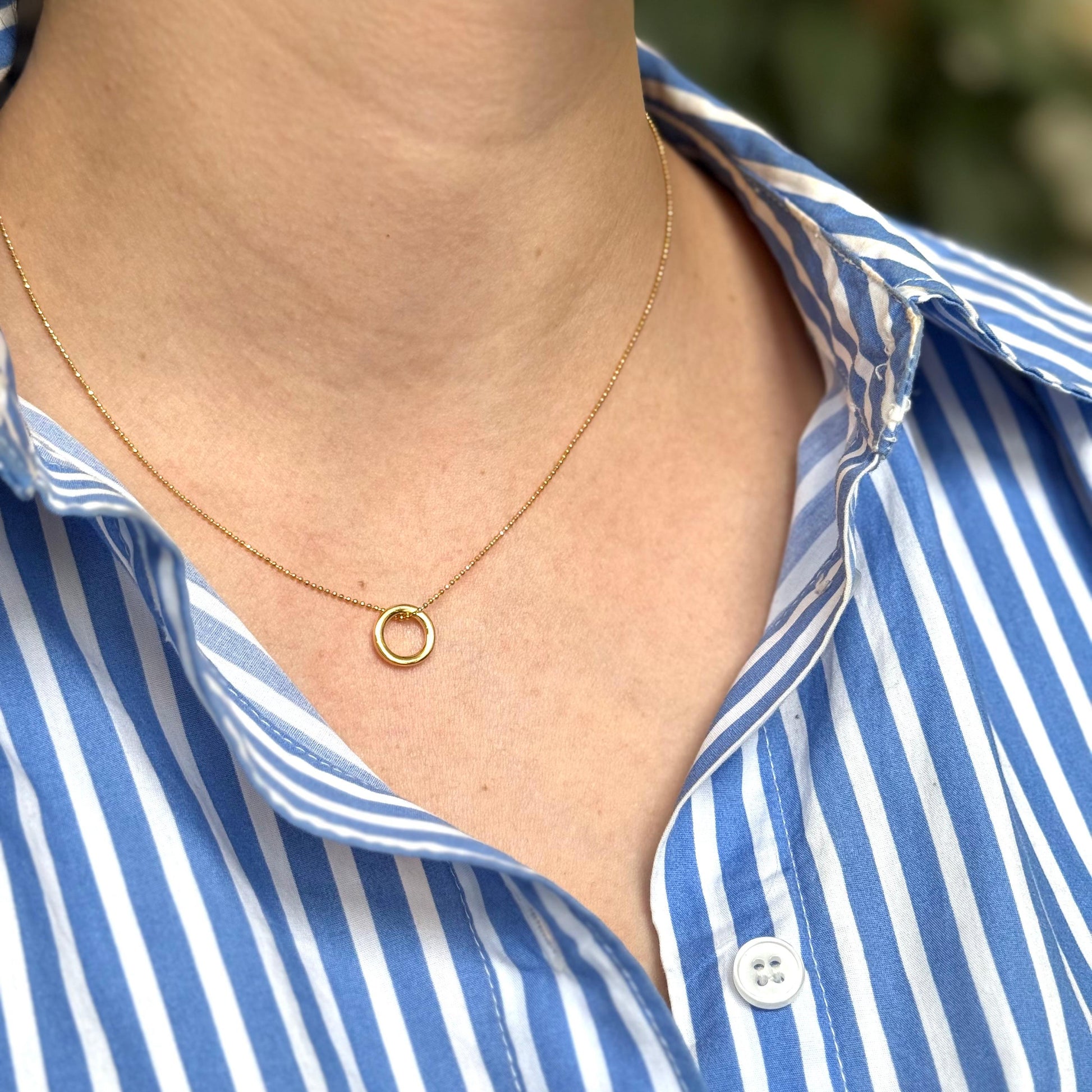 Lleva la luz de la amistad. El collar 'Luciana' con dije de círculo en chapa de oro de 22k es el regalo perfecto para compartir con amigas o hermanas. Personalízalo con un dije adicional para hacerlo aún más especial y único.