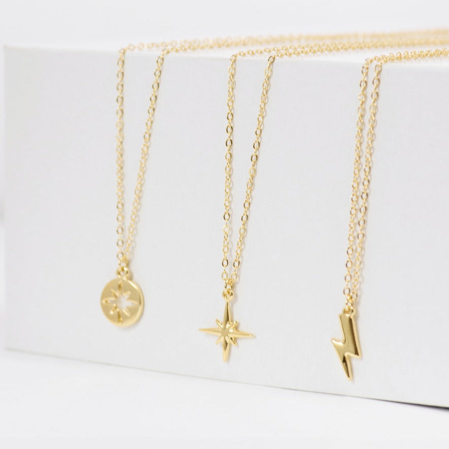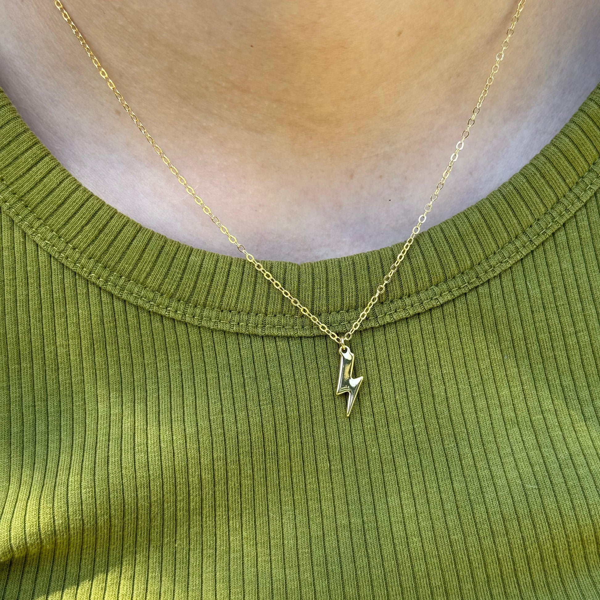 Brilla con fuerza con nuestro collar de rayito en chapa de oro de 22k. Un diseño único que refleja energía y estilo, perfecto para resaltar tu luz interior.
