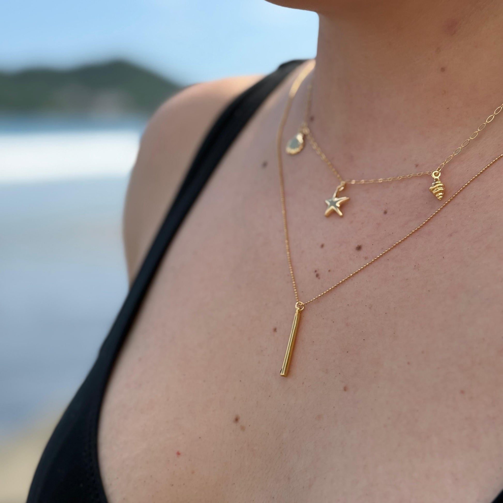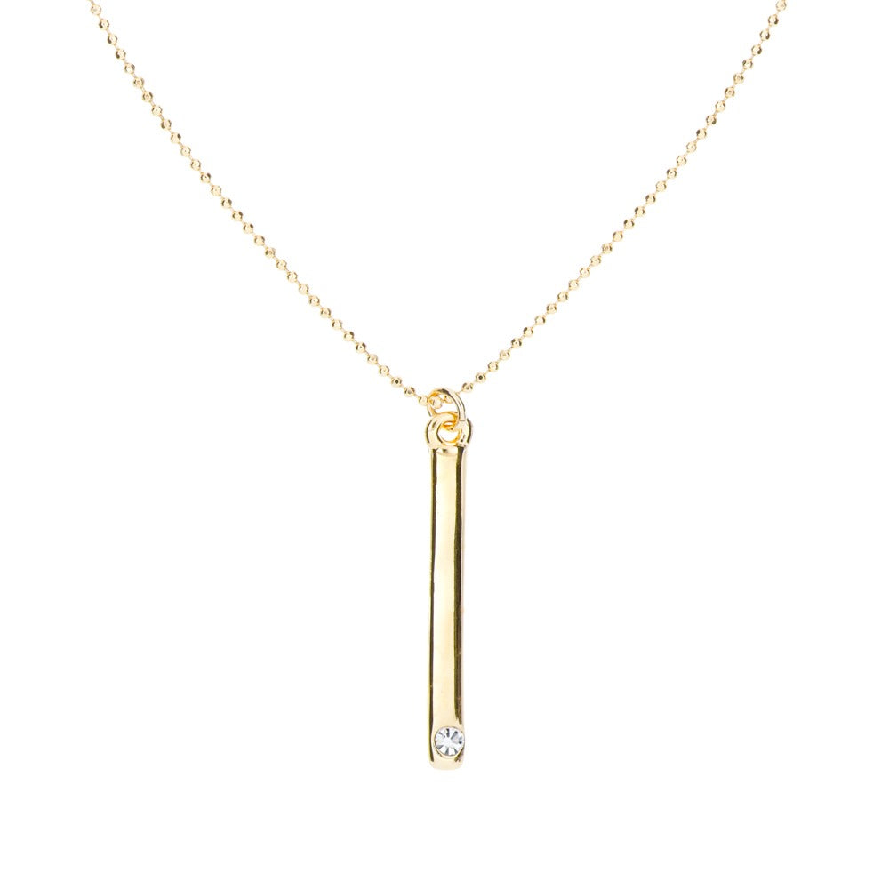 Minimalismo con actitud. Barra dorada con cristal en chapa de oro 22k. El detalle perfecto para un look sutil pero con estilo.