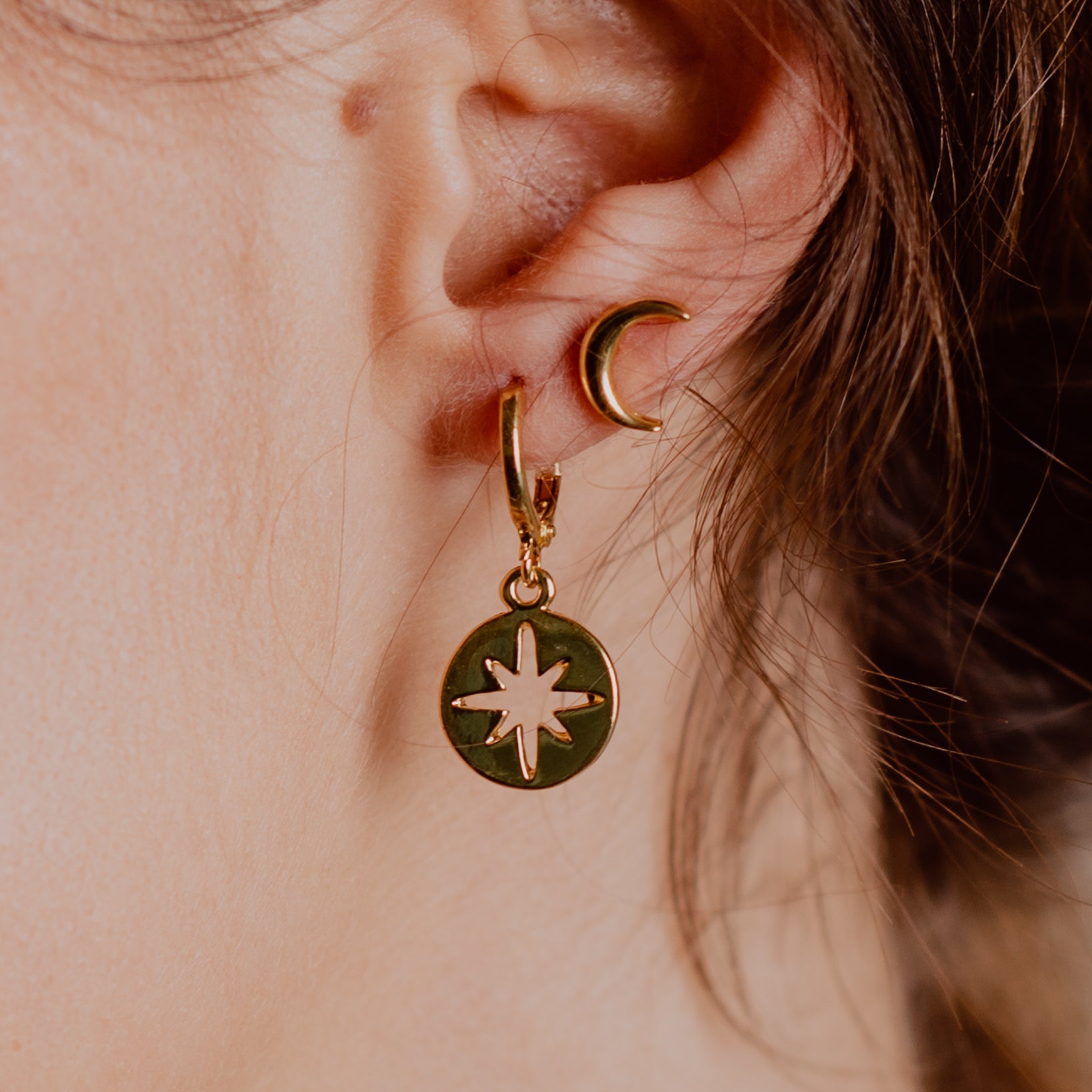 Presentamos nuestros encantadores aretes hoop con moneda estrella, una fusión perfecta de elegancia y modernidad. Con un diseño llamativo que resalta tu estilo, estos aretes añaden un toque único a cualquier atuendo. Su forma clásica de hoop se complementa con el detalle de la moneda estrella, haciendo que sean ideales para cualquier ocasión, desde un día casual hasta una noche especial. ¡Luce radiante y deja que tu personalidad brille con cada movimiento!