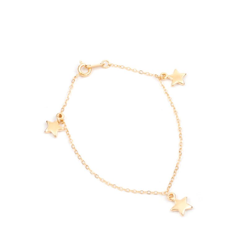 Añade un toque de elegancia con nuestra pulsera de 3 estrellas en chapa de oro 22K. Un diseño delicado y brillante para tu estilo único.
